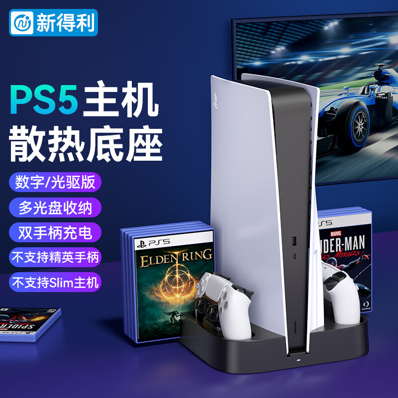 NEWDERY新得利PS5散热底座国行手柄座充光驱版主机散热器带风扇游戏手柄支架无线充电底座周边配件价格:139.00元!