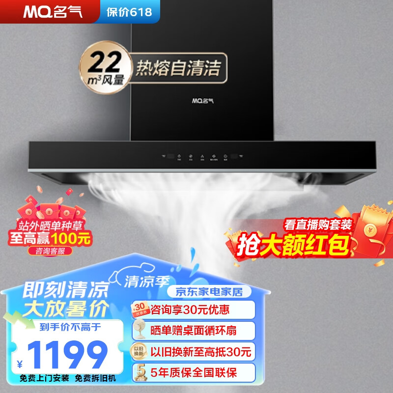 名气(MQ)老板抽油烟机家用自清洁 顶吸式欧式吸油烟机 22大风量大吸力低噪脱排油烟机 挥手智控 抽烟机 Q3价格:1199.00元!