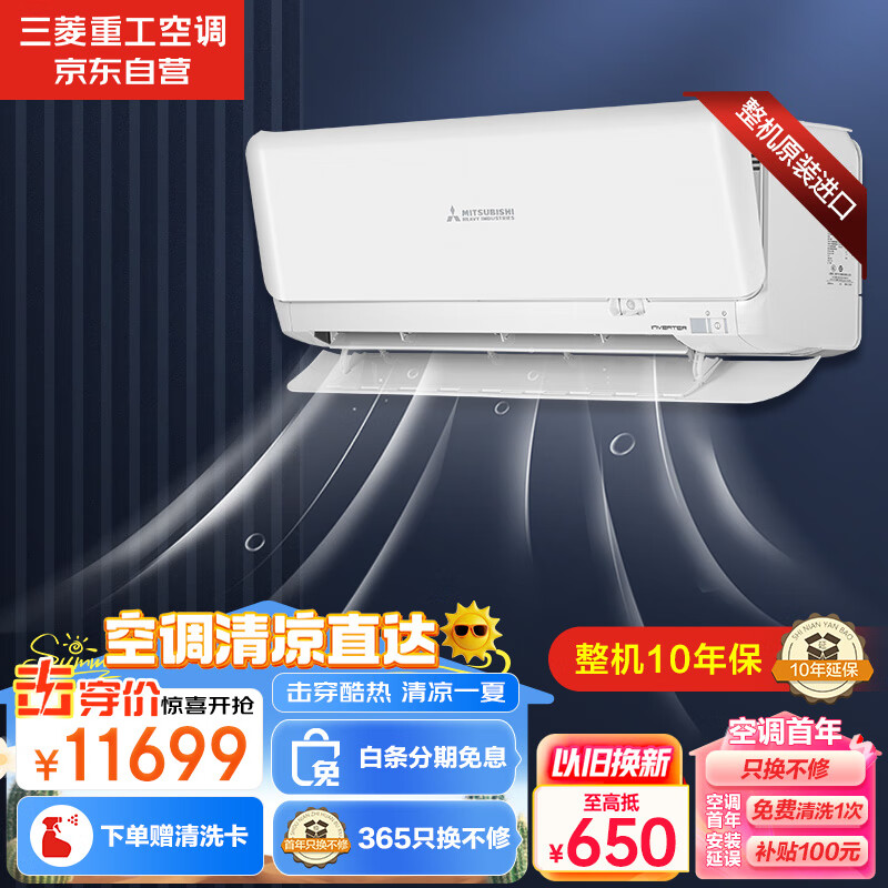 三菱重工适用11-16㎡ 新一级能效1匹 整机原装进口 变频冷暖空调挂机 人体感知节能省电 SRKAS25HVB价格:11583.50元!