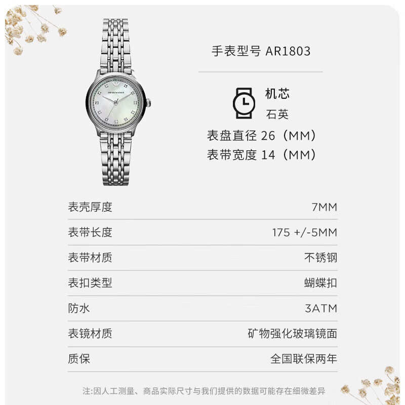 安普里奥·阿玛尼(Emporio Armani)手表女士 白月光系列贝母石英时尚女表欧美生日礼物送女友 AR1803价格:1590.00元!