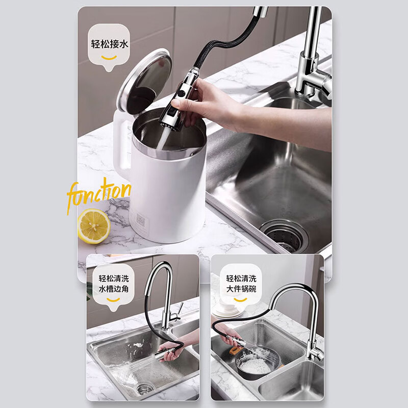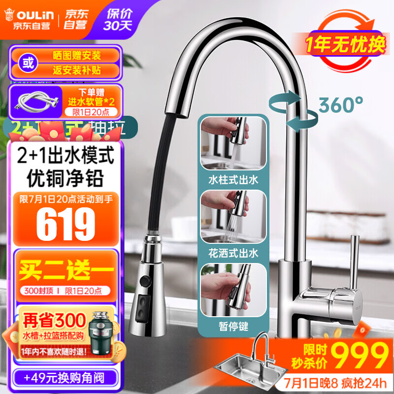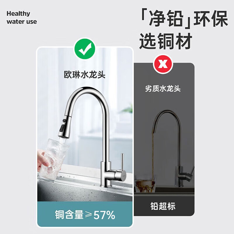 欧琳(OULIN)水槽龙头厨房抽拉式水龙头冷热洗菜盆铜水龙头OL-CFL002价格:619.00元!
