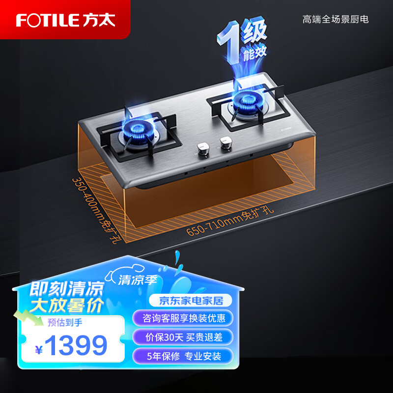 方太燃气灶(液化气)家用嵌入式不锈钢灶具 4.2kW*猛火双灶头 换装不改孔 TH25G价格:1399.00元!