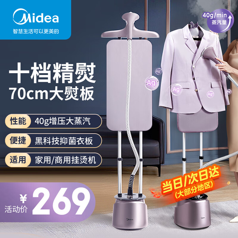 美的(Midea)挂烫机家用熨斗 高效杀菌除螨蒸汽挂烫机 大功率蒸汽熨烫机双杆手持熨烫机2.5升电熨斗YGD20P6 【新品上市】高效除菌价格:268.00元!