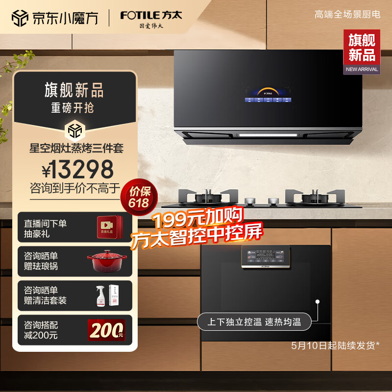 方太(FOTILE)抽吸油烟机灶具蒸烤箱多件套装 侧吸式变频 26大风量 超薄近吸 烟灶联动 防干烧 P10.i+THK21B+EP1价格:13298.00元!