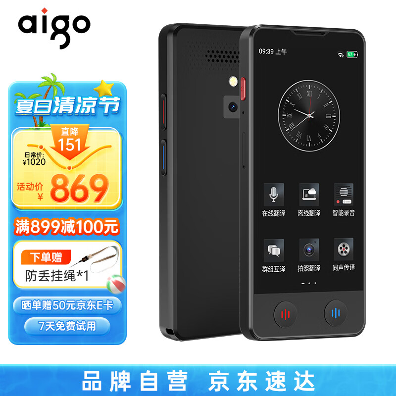 爱国者(aigo)同声翻译机 多语种离线同声传译拍照语音wifi连网智能翻译器 翻译笔出国旅游口语实时翻译价格:959.00元!