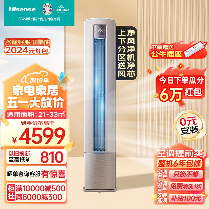 海信(Hisense)空调2匹 健康抑菌 上下分区送风超大风量新一级能效智能AI控温立式客厅柜机 KFR-50LW/S550-X1价格:4599.00元!