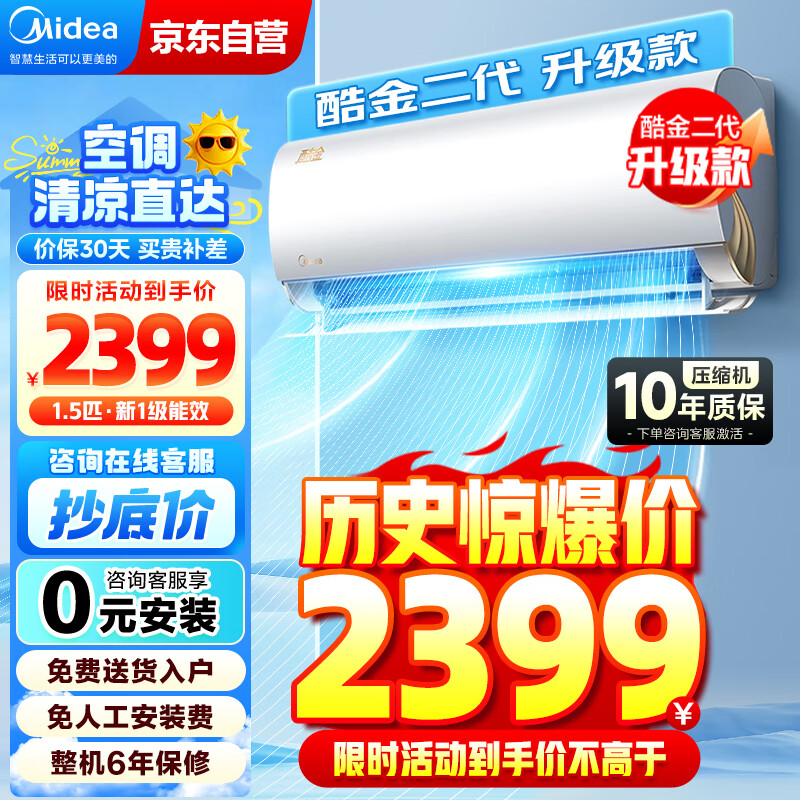 美的(Midea)空调大1.5匹挂机 酷金二代升级版 新一级能效 节能省电 壁挂式 卧室书房空调 KFR-35GW/N8ZHA1Ⅱ价格:2699.00元!