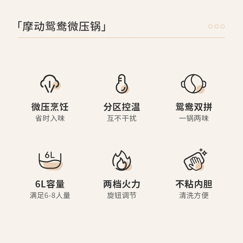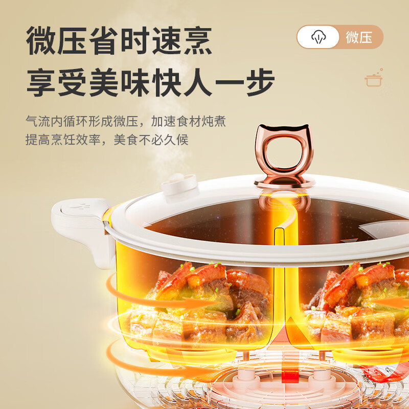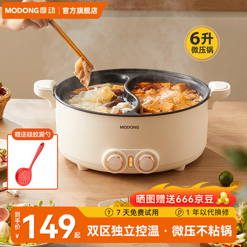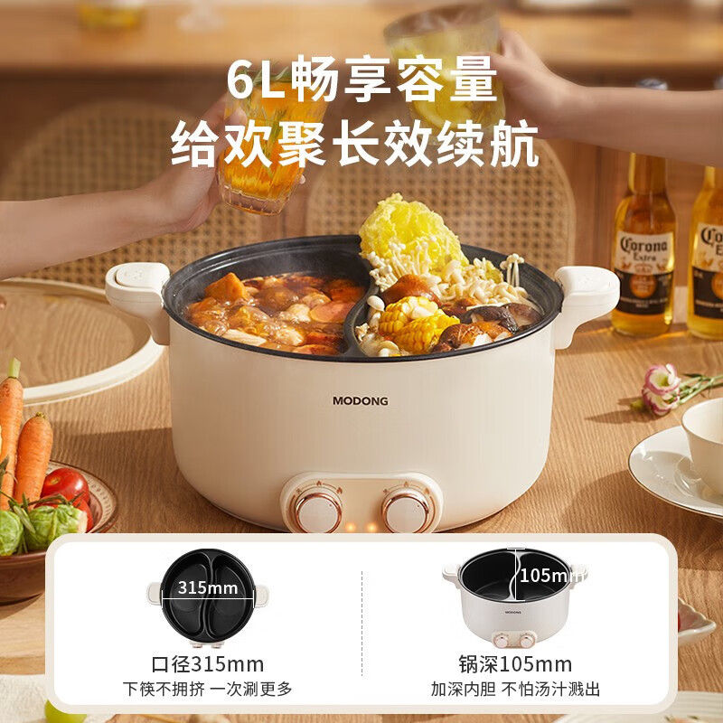 摩动鸳鸯电火锅专用锅加热锅家用多功能电热锅多用途电煮锅6L不粘鸳鸯锅分区独立控温 MD-HGE06价格:149.00元!