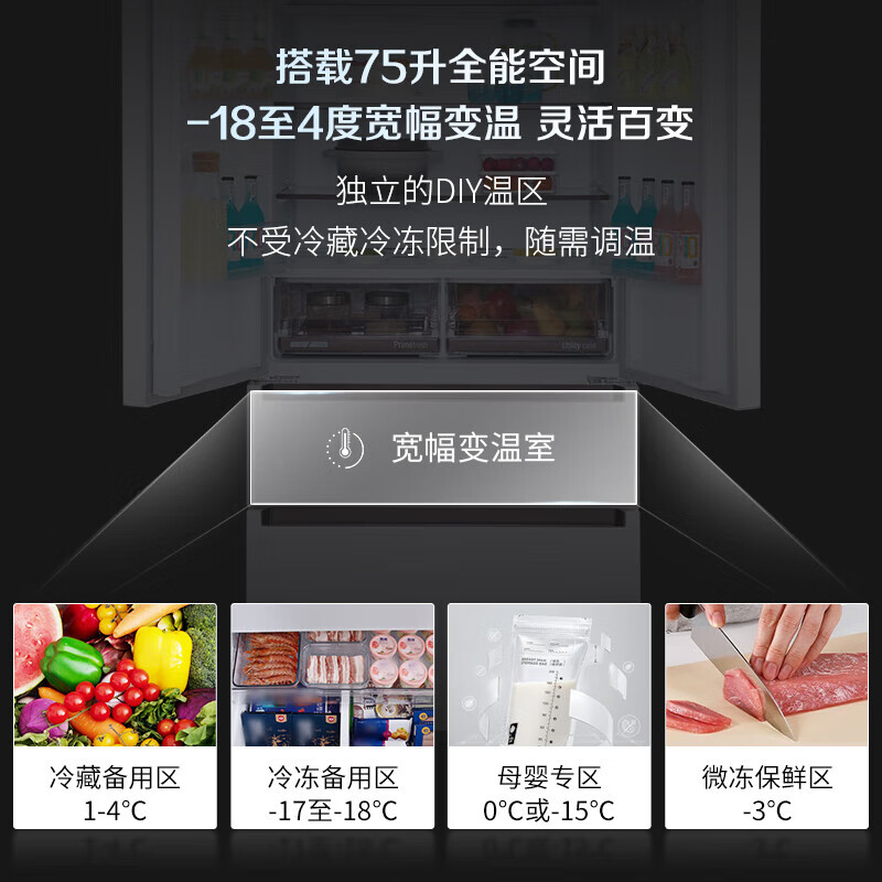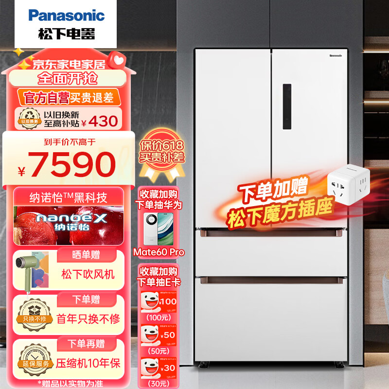 松下(Panasonic)【大海豚】573升法式多门648mm超薄嵌入冰箱四开门大容量一级能效磨砂白家用冰箱NR-EW57TMA-W价格:7990.00元!