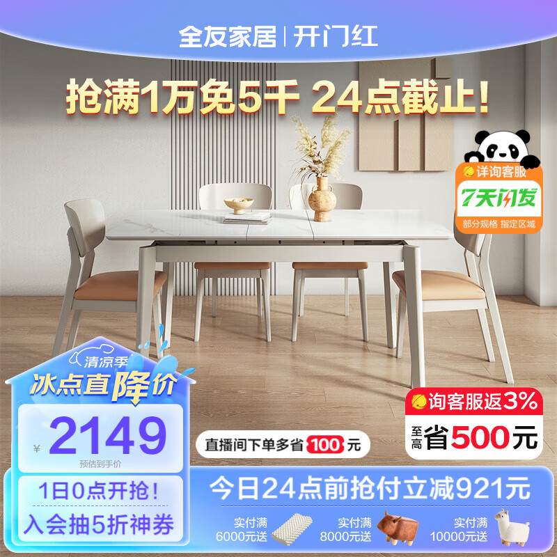 全友家居 餐桌现代简约岩板餐桌长短伸缩功能餐桌长方形桌子DW1120价格:3070.00元!