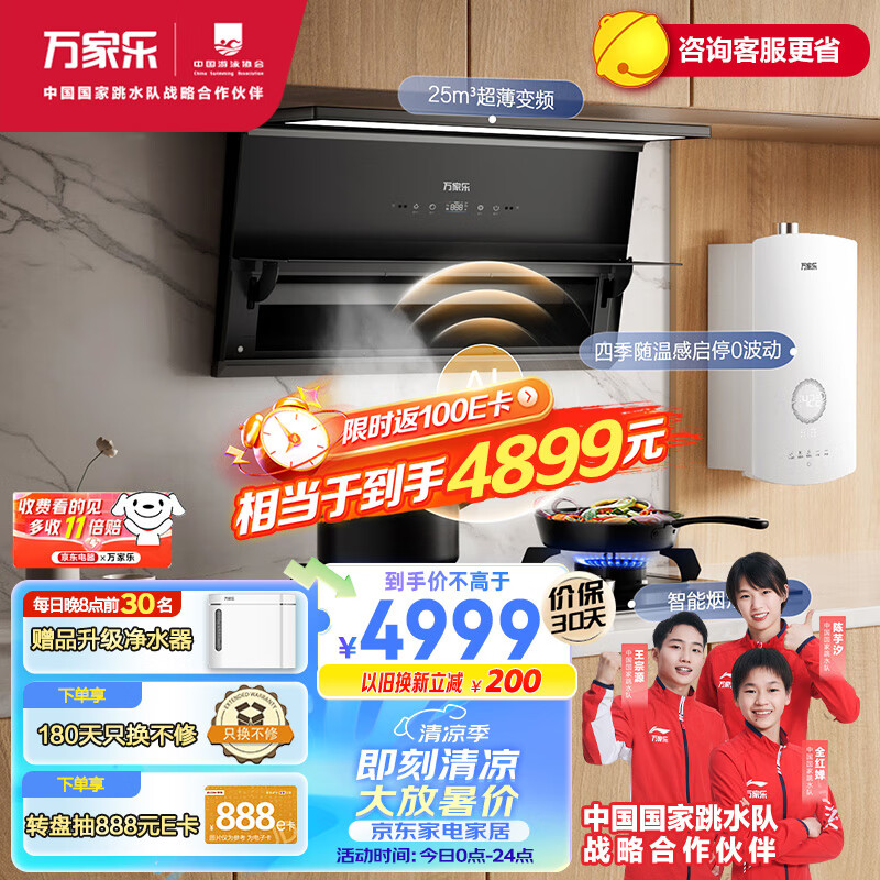 万家乐烟灶热三件套 25立方变频烟灶联动套装16L水量伺服器WIFI热水器烟灶套装AH4+KV063B+13DS8天然气价格:5099.00元!