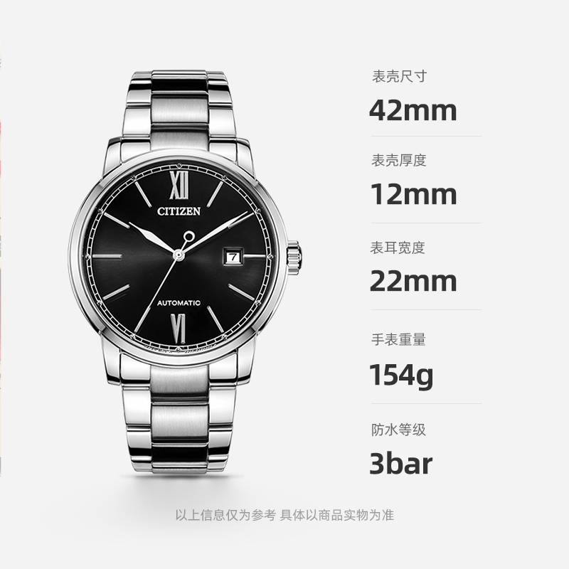 西铁城(CITIZEN)手表男日韩表自动机械日显黑盘钢带商务学生父亲节礼物NJ0130-88E价格:2772.00元!