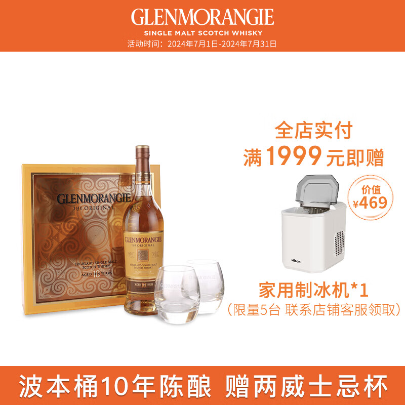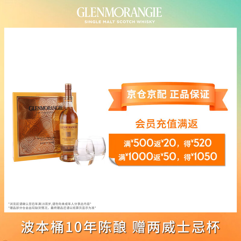 格兰杰(Glenmorangie)洋酒 10年经典礼盒 苏格兰高地单一麦芽威士忌700ml(含威杯)价格:356.00元!