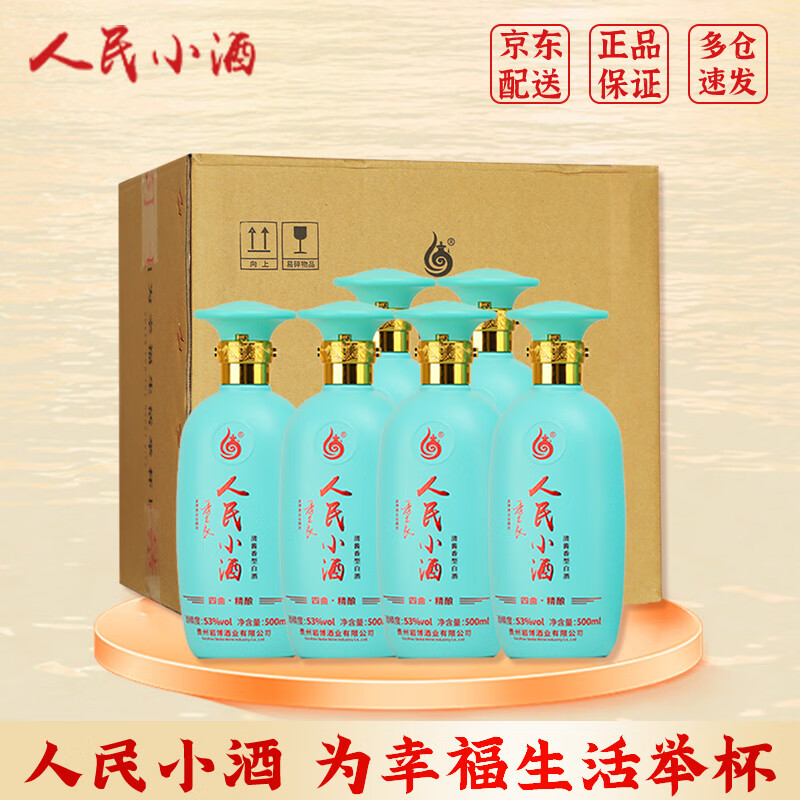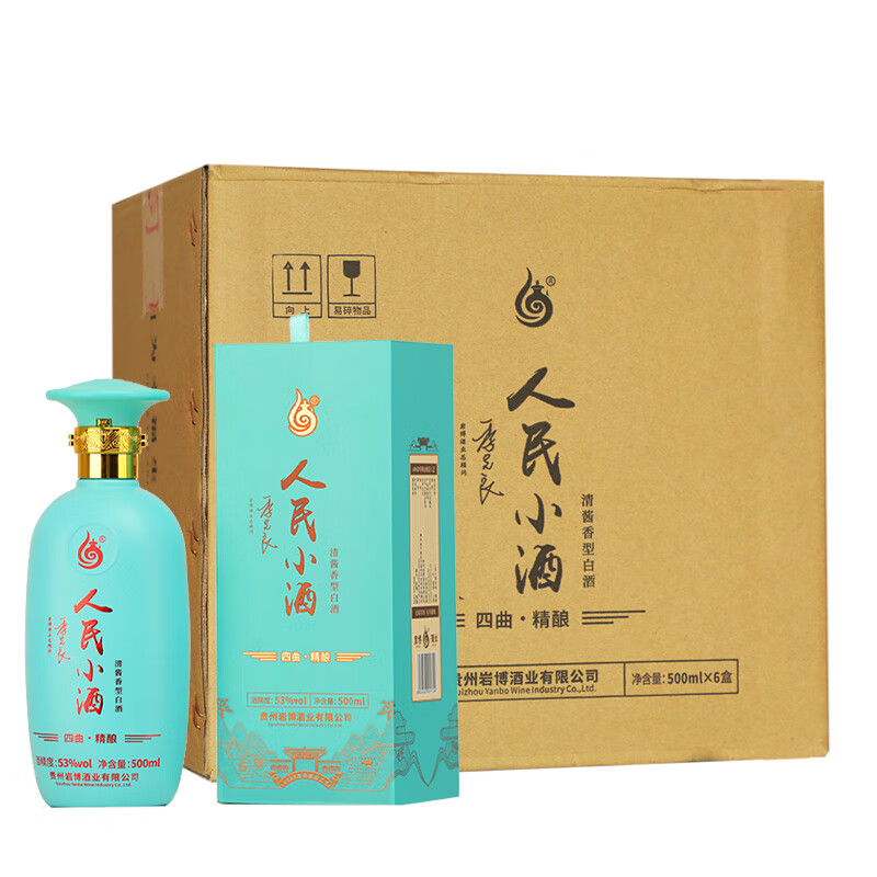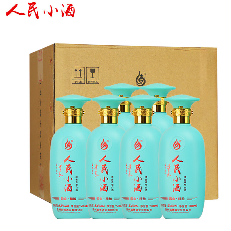 人民小酒四曲精酿 清酱香型白酒 53度 500ml*6 整箱装价格:420.00元!