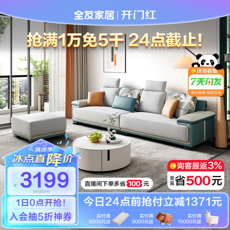 全友家居 现代简约皮布沙发小户型直排科技布艺沙发客厅家具102702价格:4570.00元!