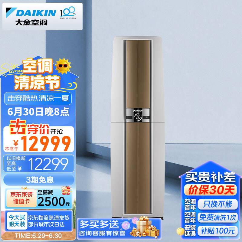 大金空调 29-49㎡适用 新二级能效 3匹 变频 冷暖 家用客厅 立式柜机 以旧换新 FVXF272WC-W价格:12999.00元!