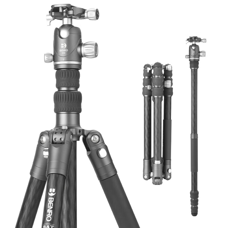 百诺(Benro)BA298CK 蝙蝠专业碳纤维便携反折摄影双全景球形云台微单反相机可拆独脚架三脚架价格:1799.00元!