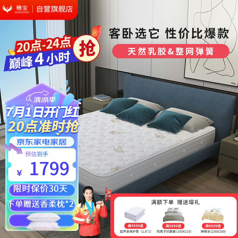 穗宝(SYMBOL)奥南天然乳胶床垫软硬适中弹簧床垫双人床垫1.5米*2米价格:2149.00元!