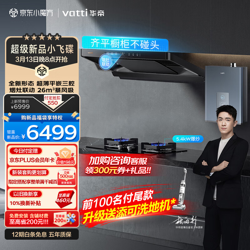 华帝(VATTI)抽油烟机变频欧式三腔26风量油烟机灶具热水器厨房多件套烟灶联动i11S36+100B+254-16(天然气)价格:6799.00元!
