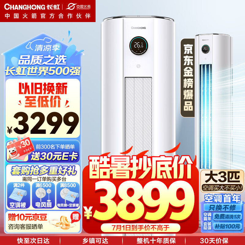 长虹(CHANGHONG)大3匹新一级能效 熊猫懒二代 变频冷暖 精准控温 空调立式 空调柜机KFR-72LW/ZDTTW2+R1以旧换新价格:4099.00元!