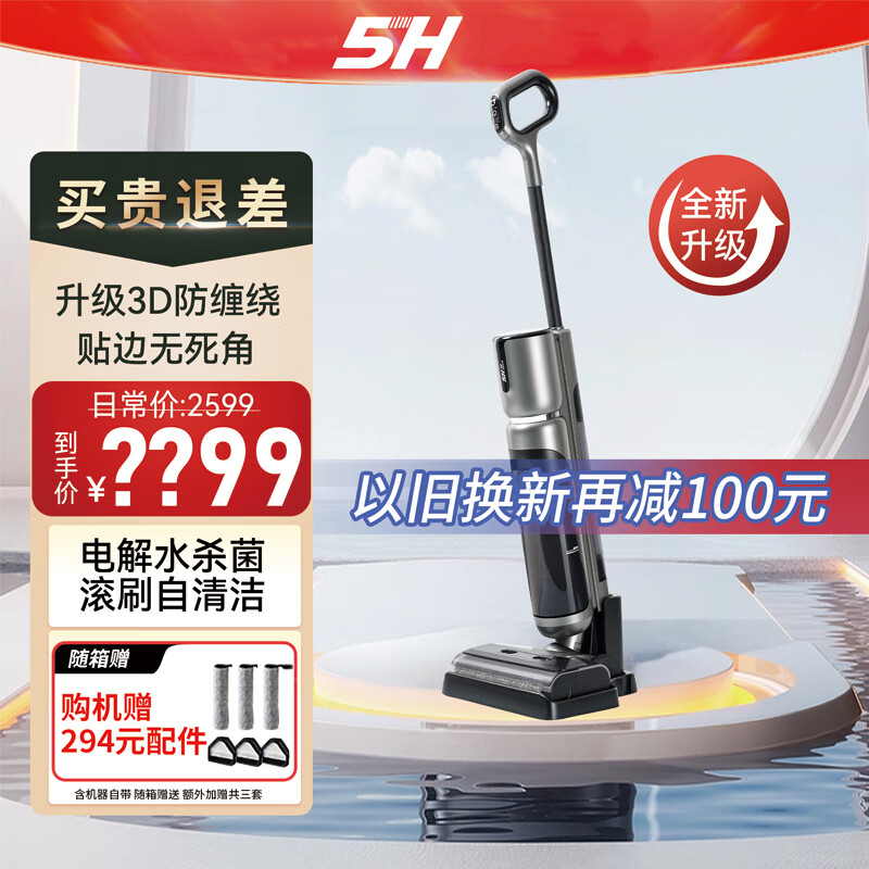 5H无线洗地机家用吸尘扫地拖地机 智能吸拖一体 电解水杀菌 躺平双贴边自清洁价格:2599.00元!