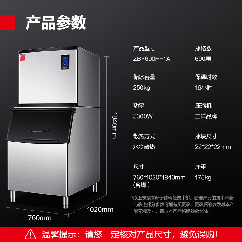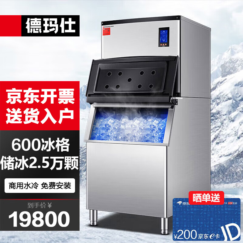 德玛仕(DEMASHI)商用制冰机大型奶茶店单位后厨酒店大容量冰块机制冰器 ZBF600H-1A 600冰格|日产57600颗冰价格:19800.00元!