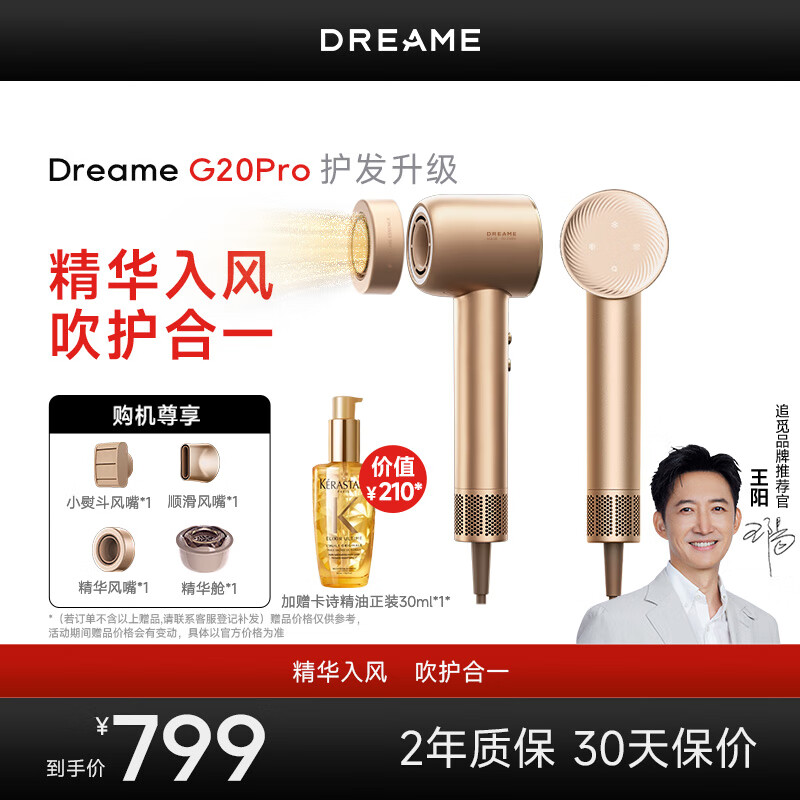 追觅韶光G20Pro高速吹风机家用 大功率负离子 精华弹护发润发电吹风礼盒节日礼物 香槟金—卡诗精华版价格:799.00元!