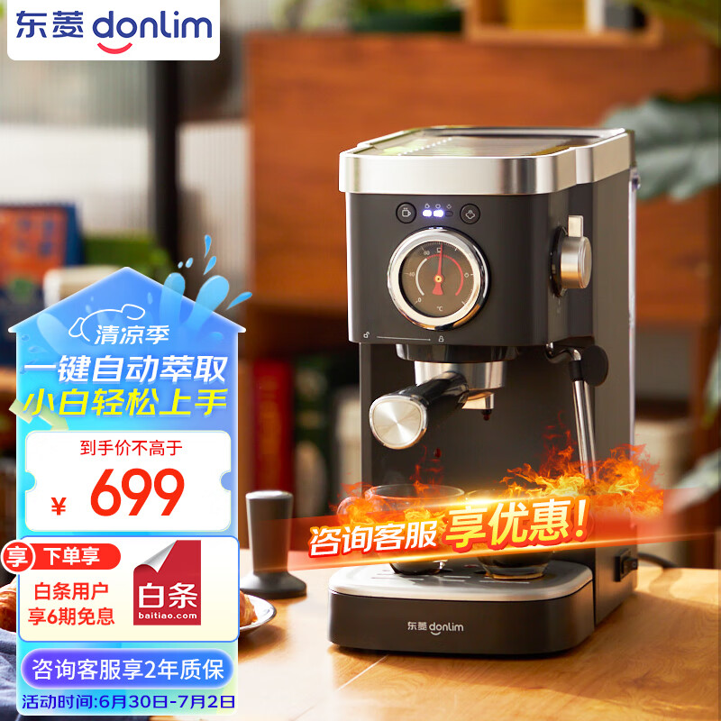 东菱(Donlim)咖啡机 家用 意式半自动 20bar高压萃取 蒸汽打奶泡 操作简单 东菱啡行器 好礼推荐DL-6400钛金灰价格:699.00元!