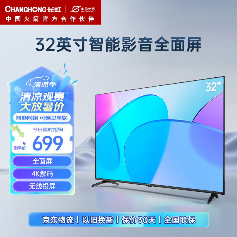 长虹电视32D4PF 32英寸智能网络屏教育电视 4K解码 蓝光高清 手机投屏 平板液晶电视机 32英寸价格:699.00元!