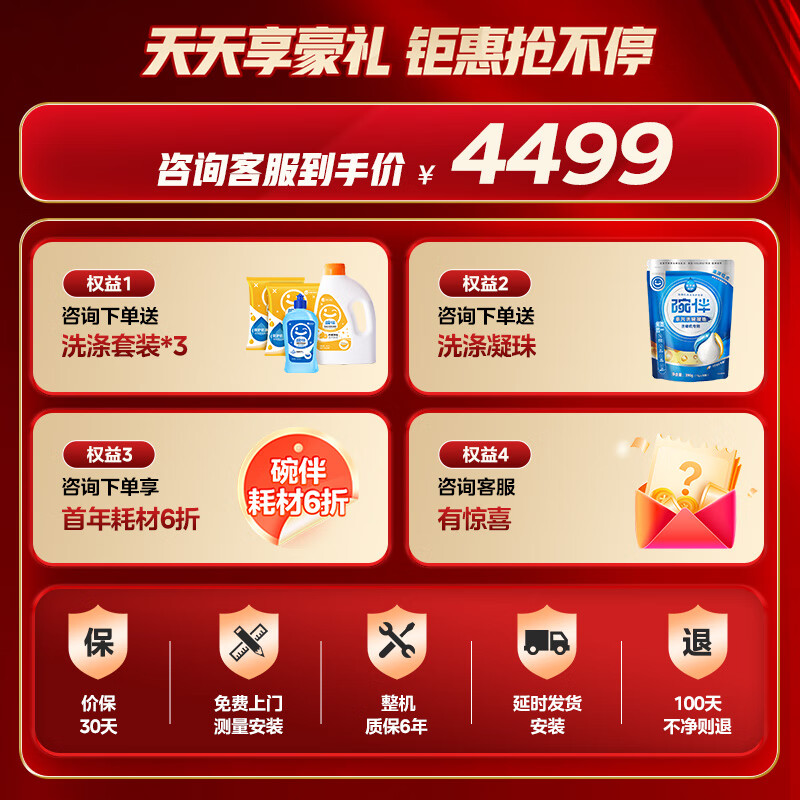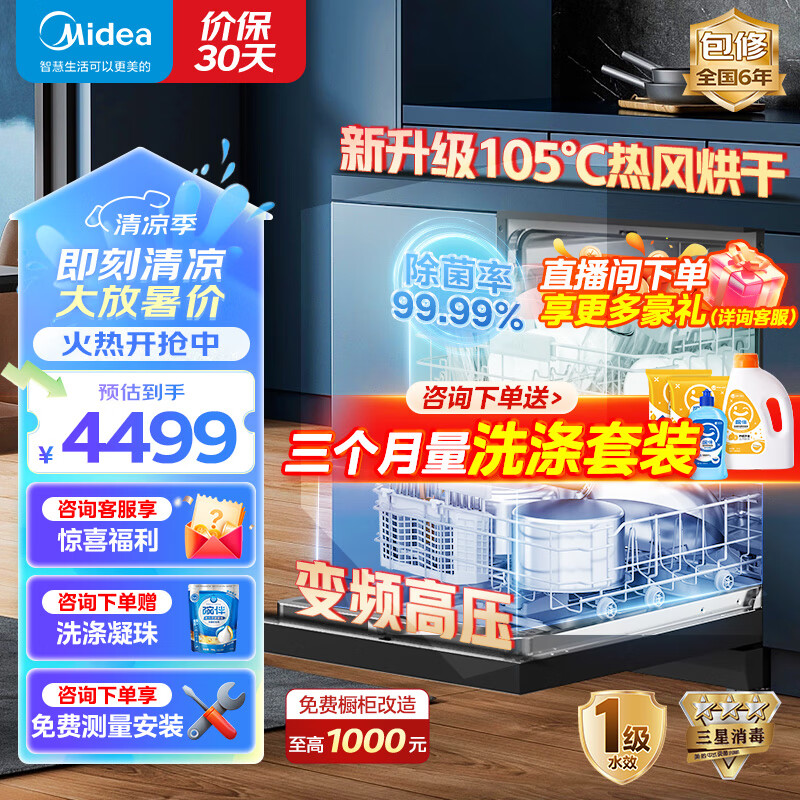 美的(Midea) TJ1000家用洗碗机嵌入式14套消毒柜一体机 智能分层洗 三星消毒热风烘干 洗碗机免费橱改 【三星消毒变频105°烘干】天净1000价格:4499.00元!