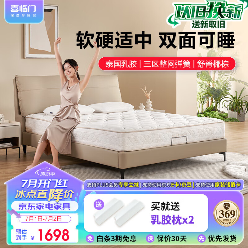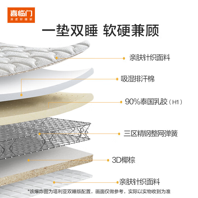 喜临门床垫 泰国高纯乳胶三区弹簧 椰棕软硬席梦思塔利亚双睡1.5x1.9米价格:1698.00元!