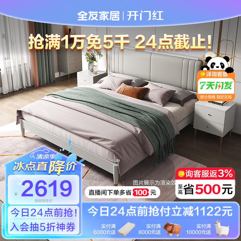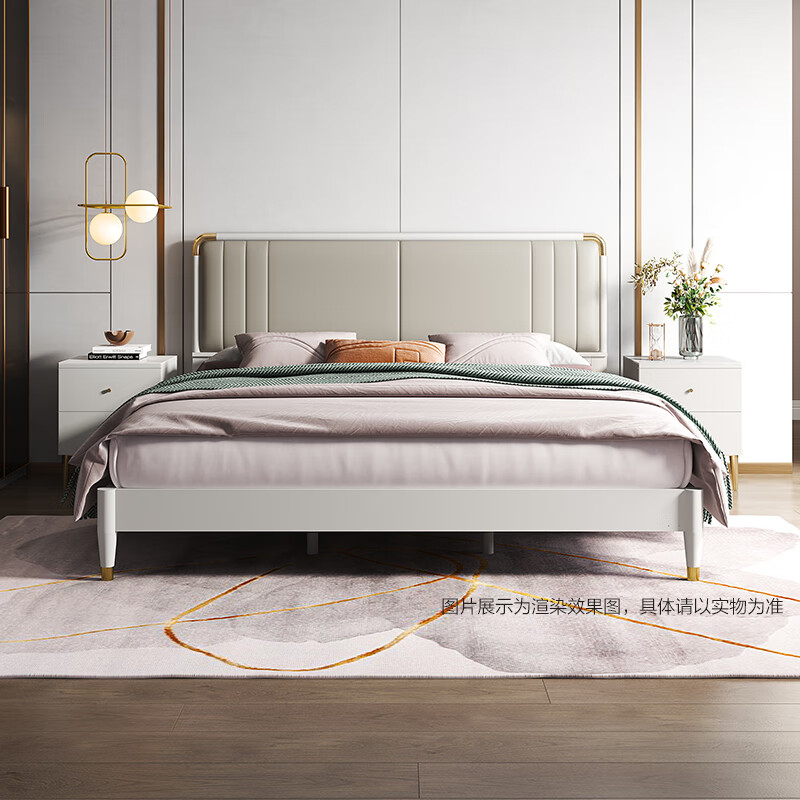全友家居 现代轻奢卧室双人床实木框架带软包床屏框架床126901价格:3741.43元!
