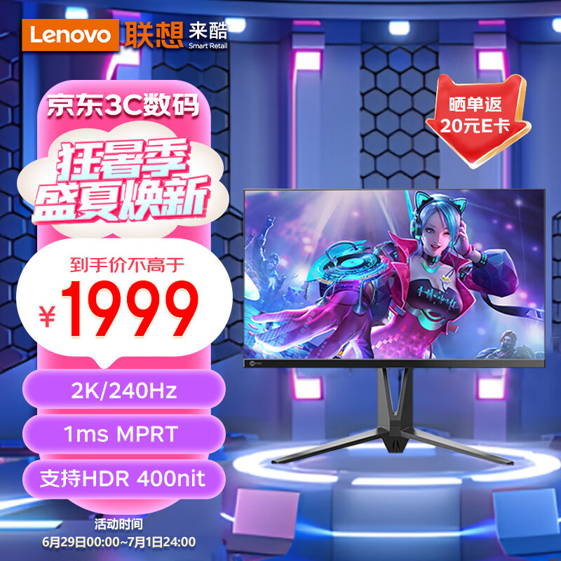 Lecoo联想来酷Lecoo27英寸2K 240Hz 1ms响应 低蓝光不闪屏快拆旋转升降支架 专业电竞显示器 K2718SQE价格:2099.00元!