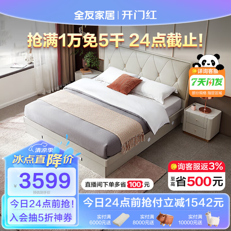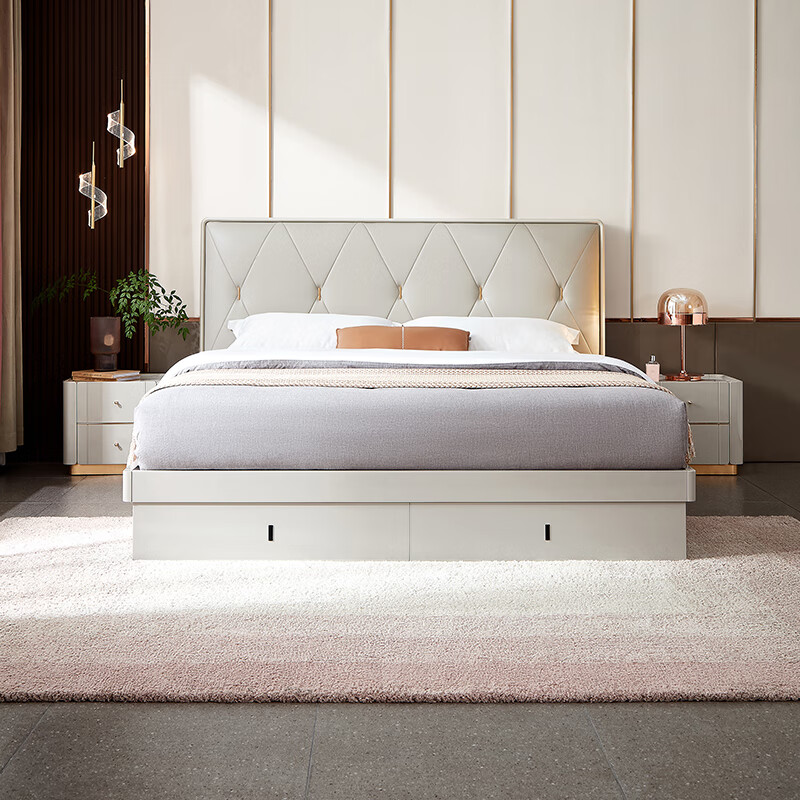 全友家居 床 轻奢欧皮软床主卧实木床屏边框高箱储物床127801 1.5m带抽高箱床+床头柜*1+105169Ⅱ床垫价格:5141.43元!