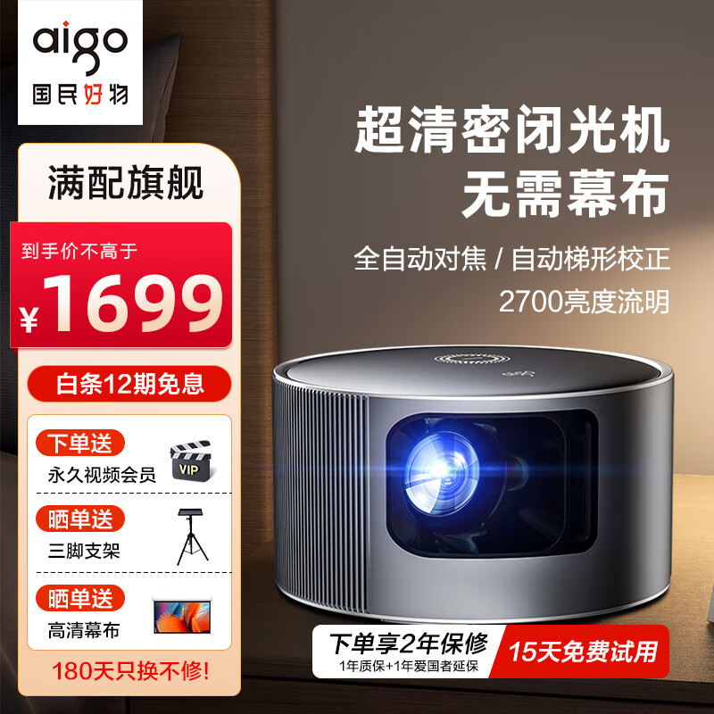 爱国者H121投影机家用投影仪办公1080P高清家庭影院(2700亮度流明 全封闭光机 全自动对焦 梯形校正)价格:1699.00元!