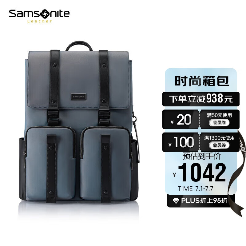 新秀丽(Samsonite)时尚百搭多场景适用双肩包15.6英寸通勤电脑包旅行包TM7*01011价格:2080.00元!