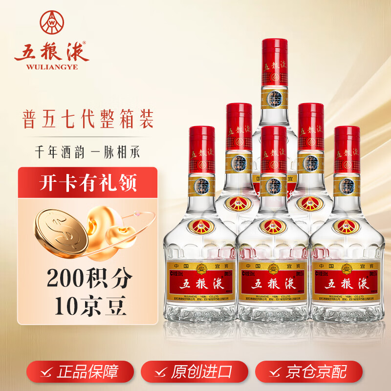 五粮液 普五 第七代 浓香型白酒 52度 500ml*6瓶整箱 商务宴请 海外版价格:5610.00元!