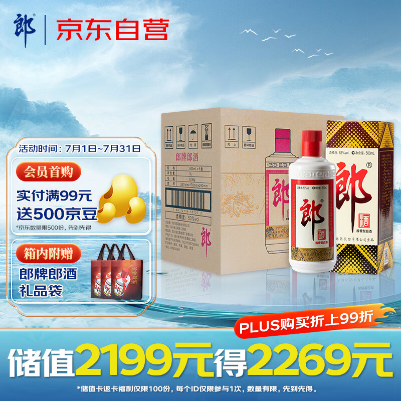 郎酒 郎牌郎酒 酱香型白酒 53度 500ml*6瓶 整箱装价格:1578.00元!