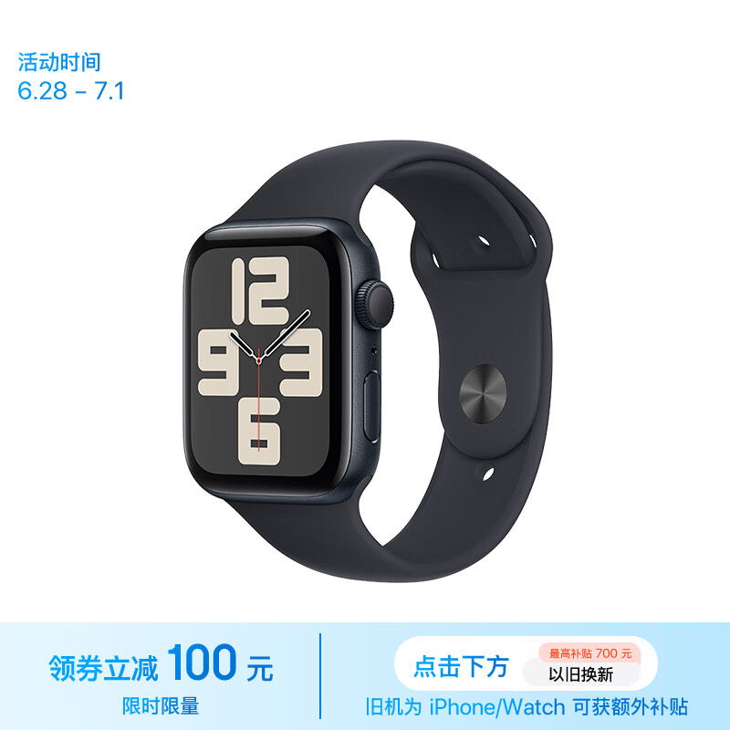 Apple/苹果 Watch SE 2023款智能手表GPS款44毫米午夜色铝金属表壳午夜色运动型表带M/L MRE93CH/A价格:2199.00元!