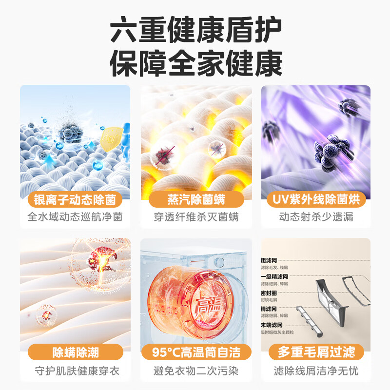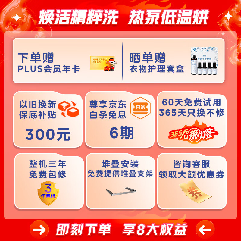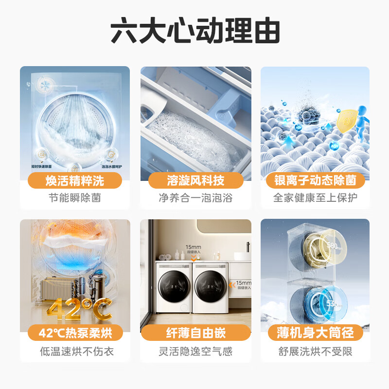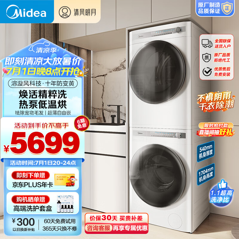 美的(Midea)洗烘套装 10公斤滚筒洗衣机全自动+热泵烘干机 焕活精粹洗 超薄【云朵系列】MG100AIR1+AIR1价格:5699.00元!