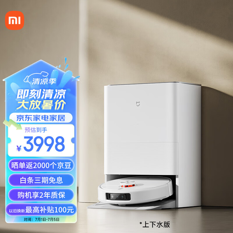 米家全能扫拖机器人M30Pro 切割毛发防缠绕 热水洗 AI智能扫拖一体全自动扫地机洗地【上下水版】价格:3998.00元!