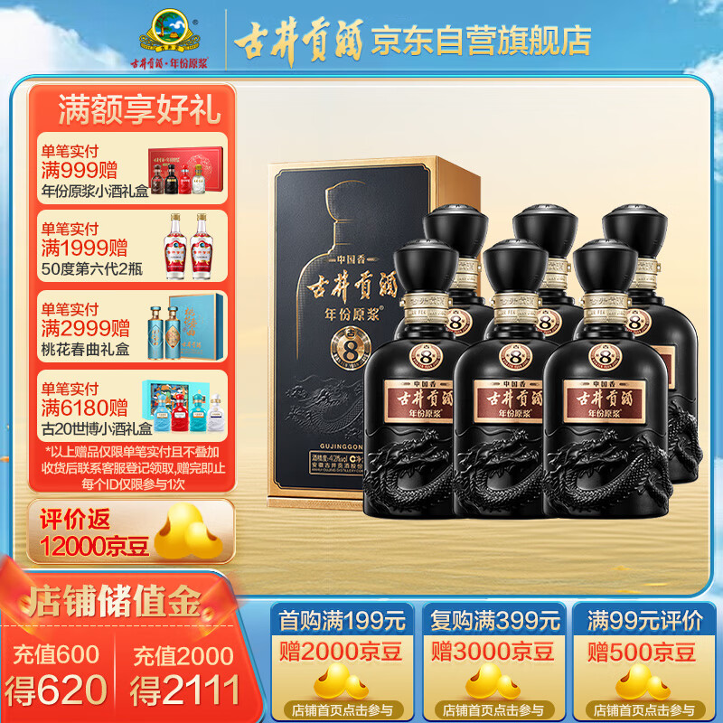 古井贡酒 年份原浆中国香古8 浓香型白酒 42度500ml*6瓶 整箱装(含礼袋)价格:2285.72元!