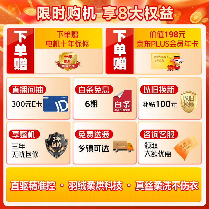 美的(Midea)滚筒洗衣机全自动 轻净直驱系列 洗烘一体机 直驱变频 顽渍超精洗 1.08洗净比 10公斤 MD100V630DE价格:2199.00元!