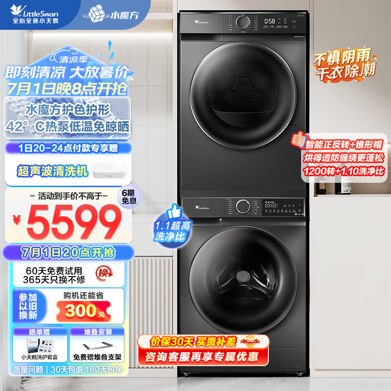 小天鹅(LittleSwan)水魔方洗烘套装 10公斤滚筒洗衣机+热泵烘干机 除螨除潮 TG100V618T+02【李佳琦直播同款】价格:5699.00元!