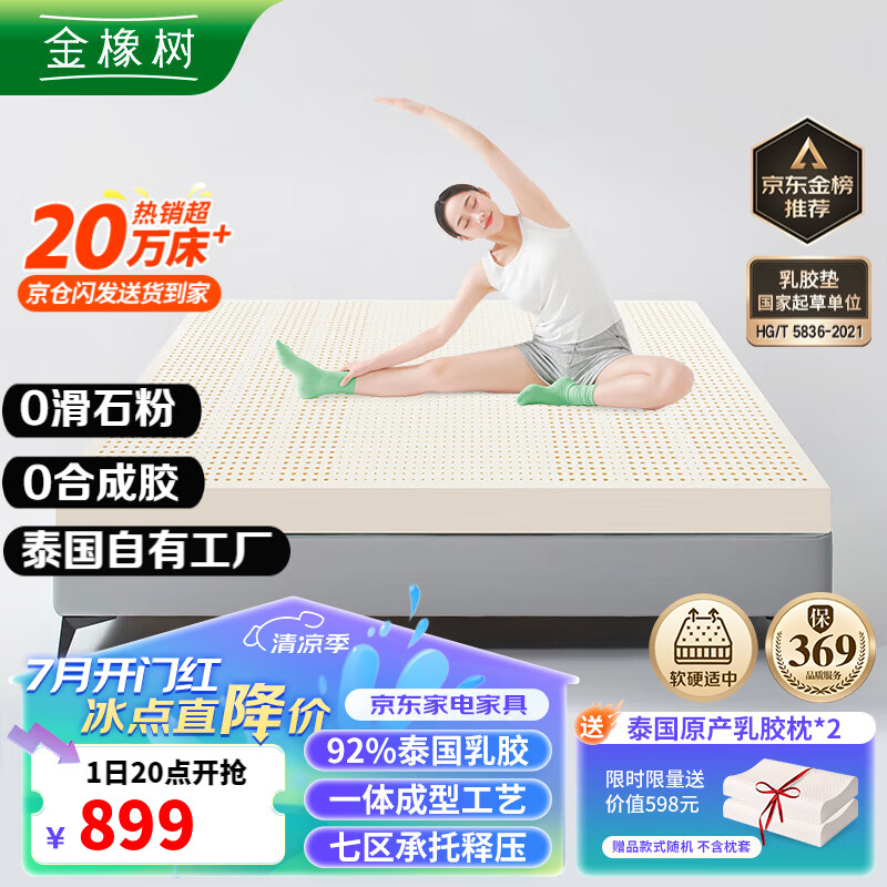 金橡树泰国乳胶原液进口床垫榻榻米单人床垫 1.2米 泰舒 含内外套价格:1498.00元!