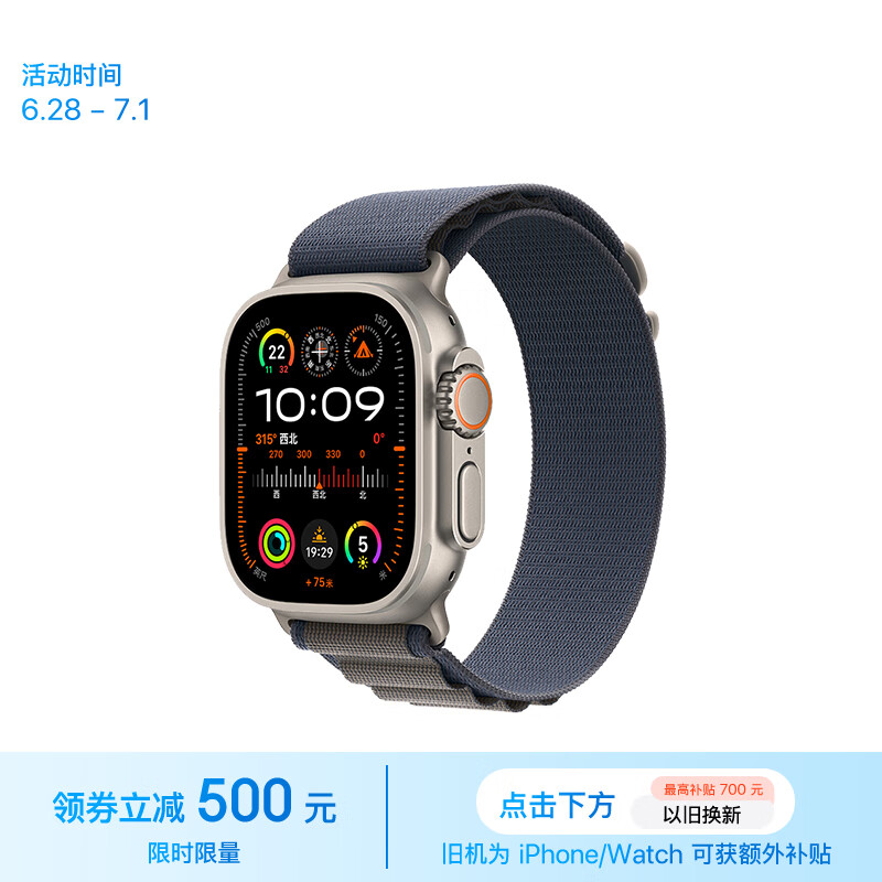 Apple/苹果 Watch Ultra2 智能手表GPS+蜂窝款49毫米钛金属表壳蓝色高山回环式表带中号MRFC3CH/A价格:6499.00元!
