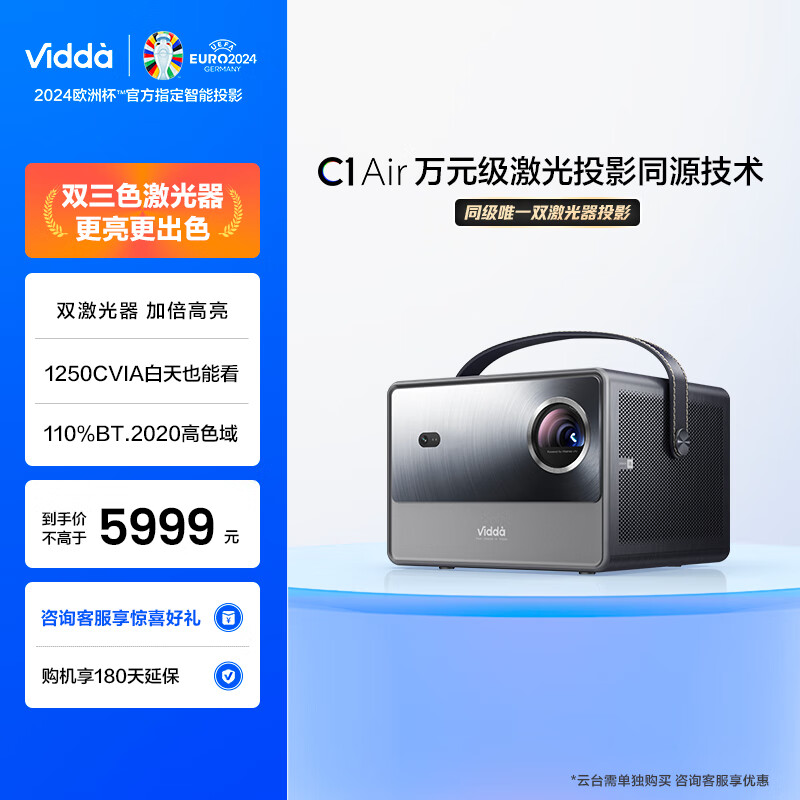 Vidda C1 Air 海信纯三色激光 高清投影仪家用户外便携投影机 卧室投屏办公室客厅智能家庭影院价格:5999.00元!