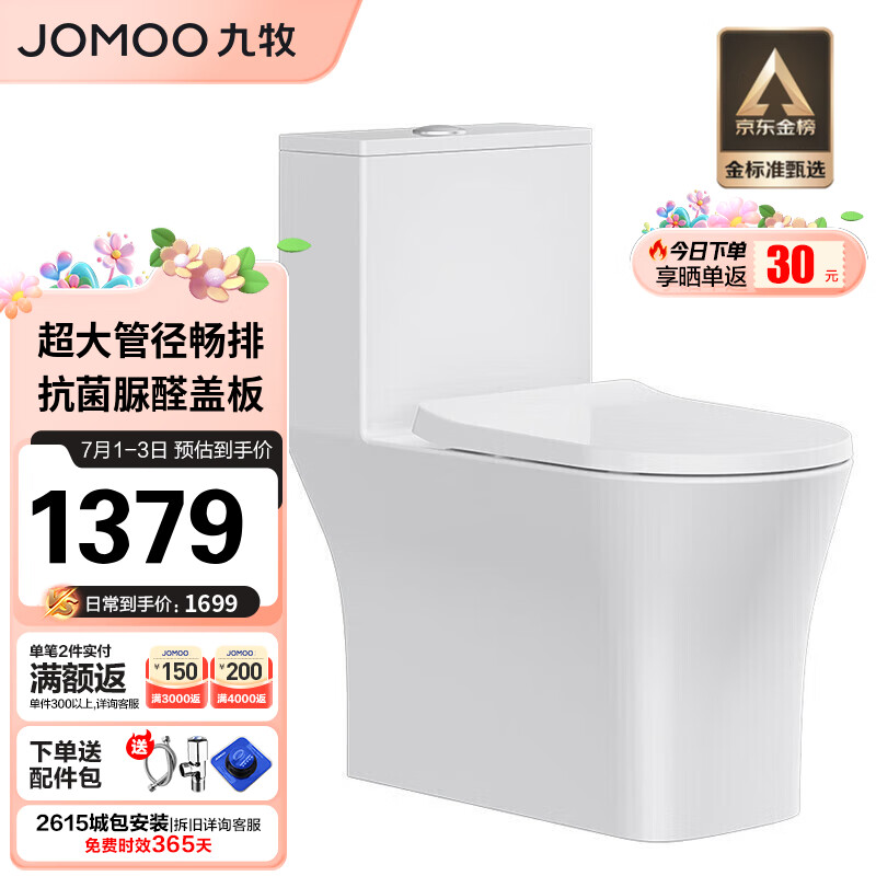 九牧(JOMOO)11322-2-2/41K-1 抗菌一级水效大冲力浴室马桶虹吸坐便器400坑距价格:1649.00元!