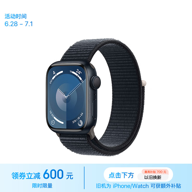 Apple/苹果 Watch Series 9 智能手表GPS款41毫米午夜色铝金属表壳 午夜色回环式运动表带 MR8Y3CH/A价格:2999.00元!