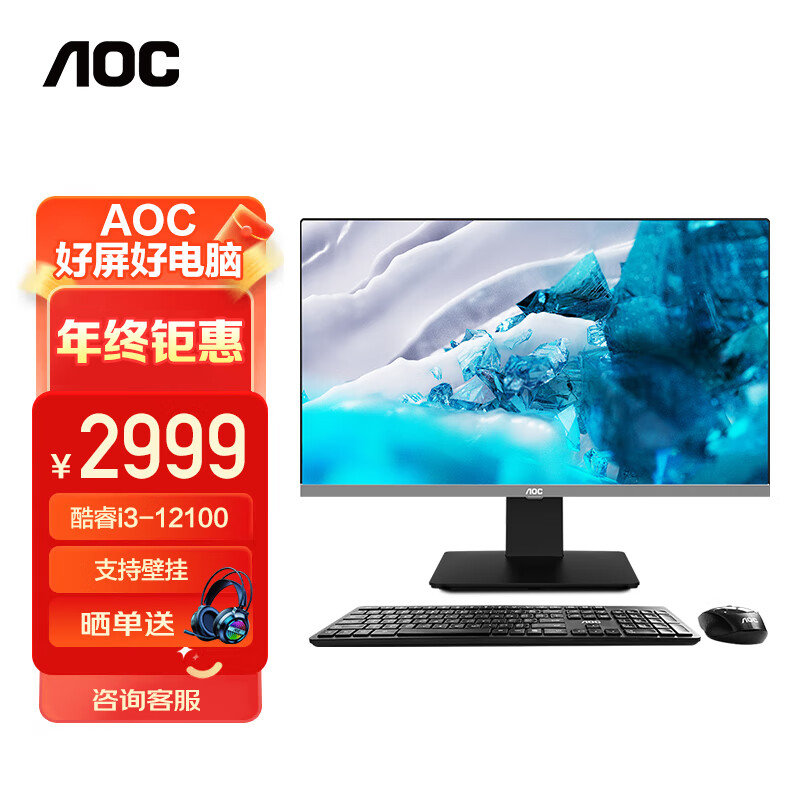 AOC AIO大师926 23.8英寸高清办公一体机电脑台式主机(12代i3-12100 8G 512GSSD 双频WiFi 3年上门)价格:3499.00元!